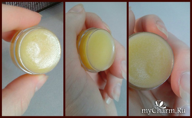 Вся восковая масса поместилась в пластмассовую баночку с откручивающейся крышкой и надписью названия продукта. Имеет плотную маслянистую текстуру, медовый цвет и приятный аромат, в котором слышна небольшая горчинка.
