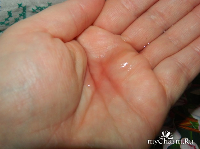 Уксус жидкий, каким ему и полагается быть, розовато-малинового оттенка. Аромат выраженный малиновый, но не природный, а синтетический. И если первые пару применений его ещё можно терпеть, то потом он надоедает до тошноты. Хорошо ещё, что после ополаскивания на волосах не остаётся запаха, иначе им вообще было бы сложно пользоваться.