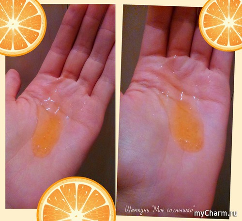 Цвет шампуня в одном стиле с флаконом) прозрачно-оранжевый. На мой взгляд, шампунь немного жидковат.