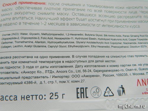 Та часть маски, что прилегает к коже, изготовлена из специальной ткани, которая транспортирует влагу (а значит, и все полезные компоненты пропитки) внутрь кожи и создаёт оптимальные условия для увлажнения и питания.