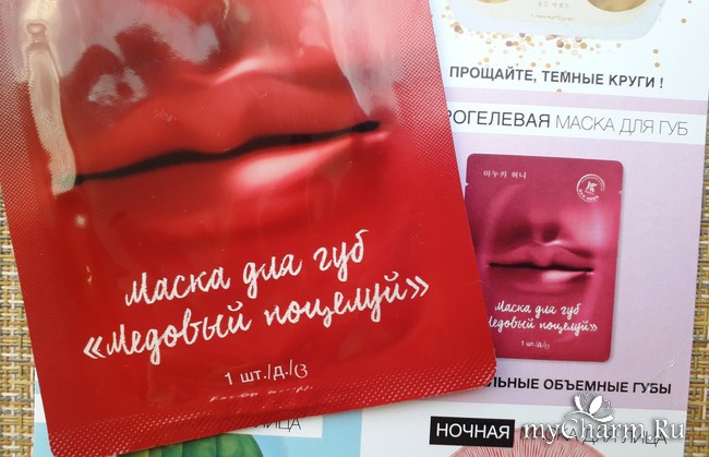 Упакован "медовый поцелуй" в не менее привлекательную упаковочку. Открыть которую не составит труда, поскольку можно сразу заметить отмеченную надсечку, проведем по ней и быстро доберемся до самой масочки! В дополнительном защитном пластмассовом чехольчике красиво разместились масочка в форме больших красивых губ!