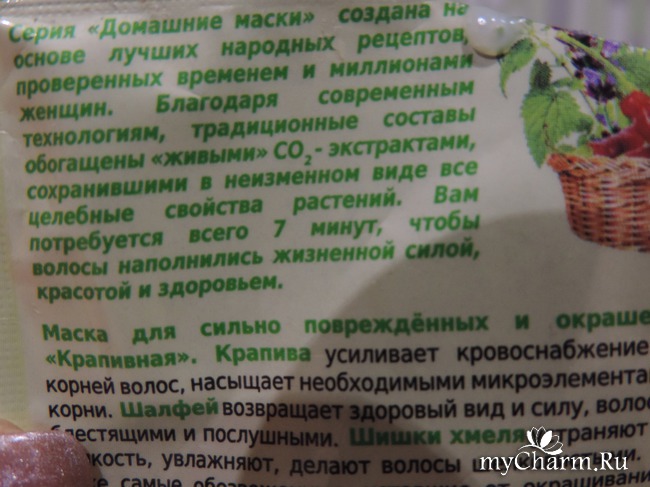 Вот она, встречайте маска для сильно поврежденных и окрашенных волос "Глубокое восстановление и питание "КРАПИВА"" с "живыми" экстрактами шалфея и хмеля из серии "Домашние маски"!!!