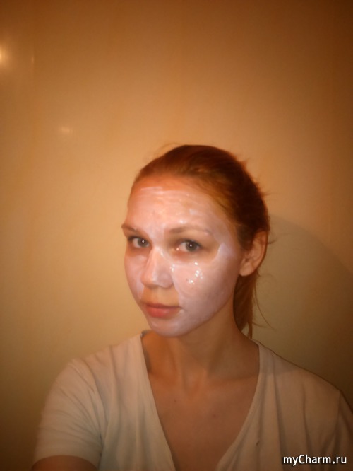 На упаковке рекомендуется выдерживать маску 10 минут. Так как никаких неприятных ощущений не было, я решила держать маску 20 минут. Сейчас описываю именно первое применение.