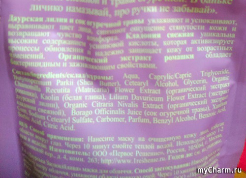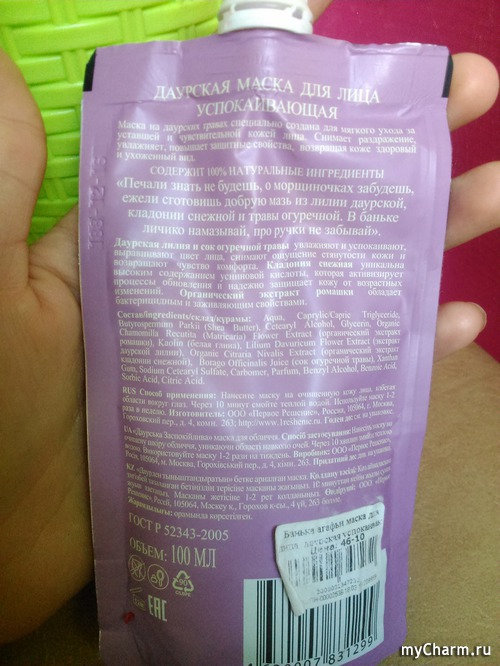 В этот раз хотелось бы рассказать вам о Даурской маске для лица из серии Банька Агафьи.