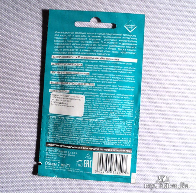 Вот такой он тоненький этот пакетик с маской, почти как пробник.