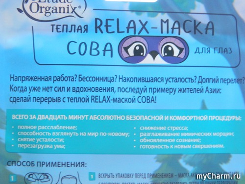 Для меня подобная маска – настоящая находка. Жаль только, что я остереглась заказать несколько штук. Маска-то – одноразовая! А так хочется ощутить на себе её волшебный эффект ещё… В следующий раз при пополнении своих косметических запасов обязательно прикуплю несколько разных таких Тёплых Relax-масок (есть ещё «Кошка» и «Сова», и у меня уже руки чешутся их опробовать). В общем, советую для уставших глаз!