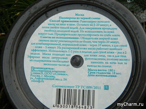 На крыше баночки стоит значок «Натуральный продукт», и это действительно так. Впрочем, у «Спивакъ» все косметические продукты состоят из натуральных ингредиентов.