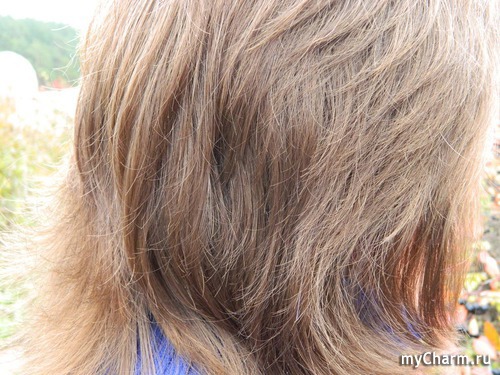 Что удивительно: волосы сохнут самостоятельно, без фена, а некий прикорневой объём всё же присутствует. И это, конечно, радует!