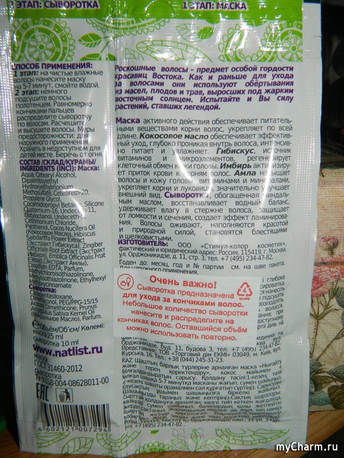 Дизайн пакетика на Чарме уже хорошо знаком: многие девочки имели возможность опробовать средства от Naturalist. И здесь я останавливаться не стану.