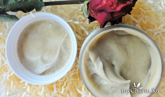 Маска желтоватого цвета с абсолютно натуральным ароматом растительных экстрактов, приятным и нежным, освежающим. Содержит очень мелкие вкрапления коричневого цвета. Не могу сказать, что это, может быть перемолотые в крошку лепестки роз или что-то подобное.