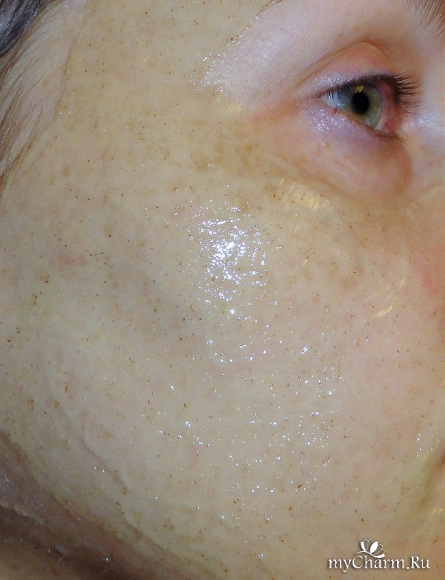 Наношу на лицо, шею и область декольте, за время работы в течение 10-15 минут маска хорошо увлажняет лицо и почти вся впитывается в кожу. Остается лишь легкая маслянистость на поверхности кожи, но не пленка. Маска хорошо смывается водой, без усилий, я удаляю остатки маски без спонжа, просто умываюсь. После смывания легкая маслянистость на коже остается. Следующим этапом рекомендовано нанести крем, но можно этого не делать, если кожа не просит, получив достаточное питание от маски. Кожа прекрасно увлажнена, смягчена и насытилась витаминами.