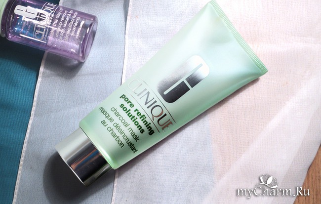 Если бы не высокая цена этих масок – купила бы их все, и осуществила бы модную идею с мультимаскингом. Но пока у меня только вот эта маска – с углем, Pore Refining Solutions Charcoal. Это первая угольная маска от Clinique, её главный активный ингредиент – древесный уголь, который поглощает масла и притягивает на себя все загрязнения, то есть качественно очищает.