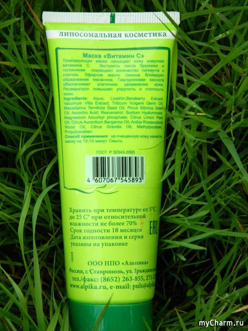 Дата изготовления средства указана на упаковке, срок годности – 18 месяцев. Почему-то не указан срок хранения после открытия тубы, но особенность косметики «Альпика»: на других средствах данной даты я тоже не видела. Плюс к этому не обозначено, как часто можно делать маску – раз в неделю или десять дней, а может, два раза в неделю? Жаль, что такая важная информация не указывается производителем на упаковке…