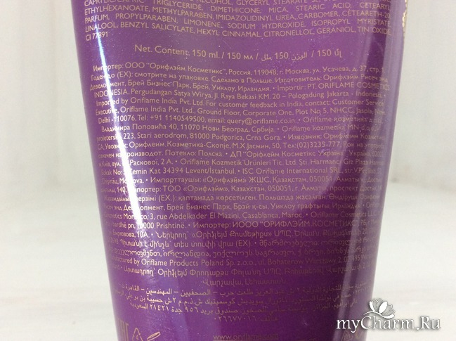 Объём тюбика - 150 мл. Красивый фиолетовый тюбик украшает мой косметический шкафчик, разбавляет сине-шоколадно-золотую гамму (преобладающие цвета упаковок другой косметики, которой я пользуюсь регулярно).