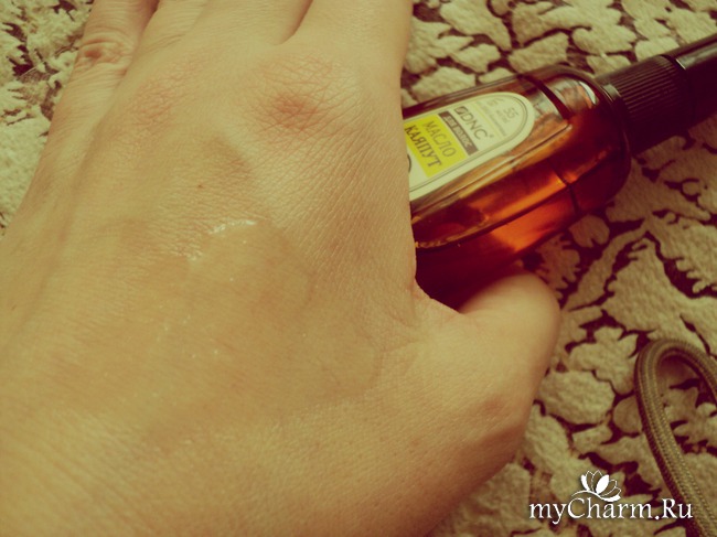 Об использовании и результатах. В применении никаких сложностей нет. Каяпутовое масло уже разбавлено другими ингредиентами, что бережет наше бесценное время и деньги. Эфирное каяпутовое масло в чистом виде применять нельзя, последствия могут быть весьма плачевными. Так, как же использовать масло от DNC? Распределяем масло по волосам и втираем в кожу головы, надеваем полиэтиленовый колпак или шапочку, затем укутываем полотенцем и ожидаем 20 минут. Мне хотелось, как следует, пропитать свои волосы, насытить их влагой и полезными веществами, поэтому я держала масло около 40 минут, после чего смывала шампунем. И, кстати, смывается масло без труда, не оставляя на волосах и у корней жирного блеска. Производитель советует применять масло 1-3 раза в неделю. У меня в косметичке для волос числиться несколько масел, потому Каяпут я применяю 1 раз в неделю.