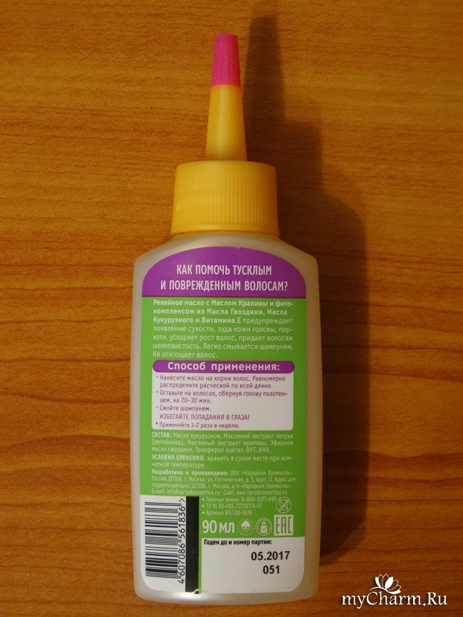 Это средство обеспечивает рост и здоровье наших волос, препятствует их выпадению, питая от самых корней и до кончиков – масло репейное.