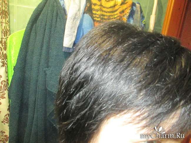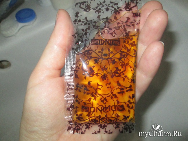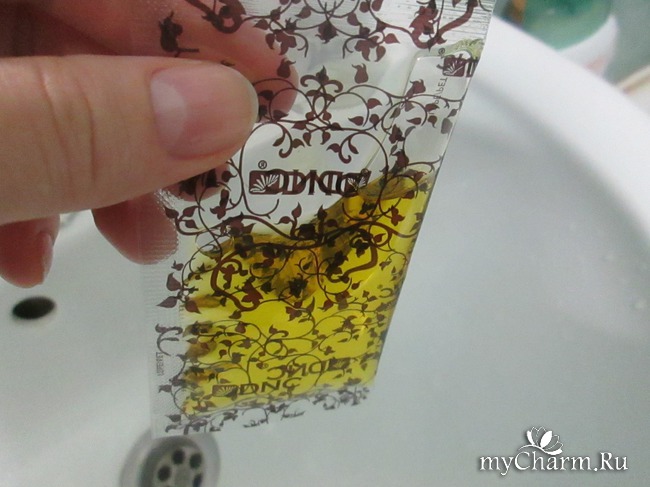 Пакетик вскрывается ножницами. Втираю маслянистую смесь желтого цвета и с приятным травяным ароматом с примесью запахов некоторых знакомых масел в кожу головы. Стараюсь это сделать по всему ее «периметру». Остатки масла распределяю по волосам. Того, что они становятся хорошо пропитанными маслом – не бойтесь. Я поначалу опасалась, что не отмою хорошо масло с волос. Но нет, вымылось отлично. Хотя об этом чуть позже.