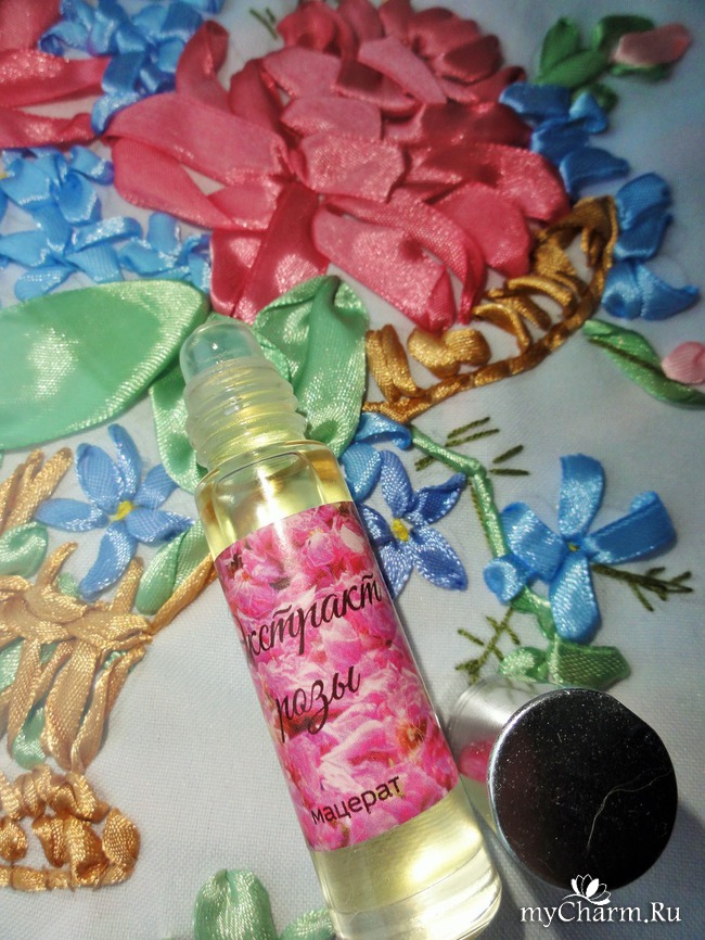 Масляный настой рапсового масла на розовых лепестках обладает восстанавливающим и противовоспалительным действием на кожу, содержит множество витаминов, флавоноиды, гликозиды, каротин. Мацерат, по утверждению производителей, обладает прекрасным антивозрастным средством для кожи, предупреждает ее старение, питает, подтягивает, смягчает и снимает покраснения.