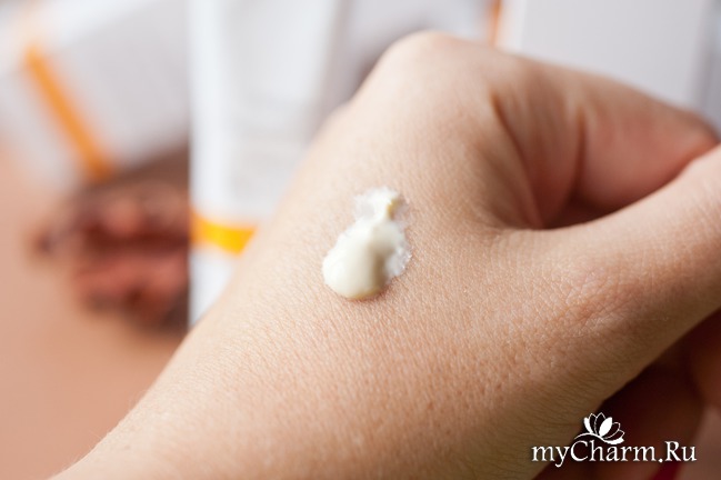 По текстуре крем не очень плотный, однако при нанесении на кожу немного капризничает, нужно его хорошенько втирать массажными движениями.