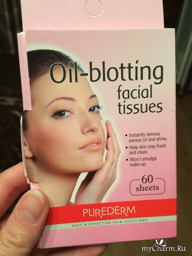 На упаковке написано, что салфетки поглощают избыточную маслянистость на коже, удаляют жирный блеск с участков носа и лба без повреждения макияжа, матируют кожу. По этому поводу скажу» да, да и еще раз да! Жирный блеск удаляется отлично, тональный крем остается на коже, лицо становится матовым и свежим.