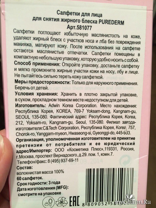 Когда я раньше слышала о подобных салфетках, мне казалось, что они должны быть влажными или иметь в составе какое-то специальное вещество, но поверьте, это просто салфетка, которая, видимо подобна промокашке. Она полностью впитывает влагу с поверхности кожи, оставляя на ней всё остальное. Даже желтого оттенка от тонального крема на ней не остается! Для меня это настоящее чудо! Кстати, в их составе имеется лишь стопроцентная волокнистая масса. Не зная, что это такое, я заглянула в интернет. Оказалось, волокнистая масса – это суспензия волокон древесины в воде, прошедшая химическую или механическую обработку. То есть входящий в состав основной элемент является натуральным.