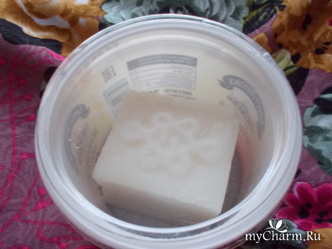 Сам дезодорант выглядит как кусочек мыльца или плитка белого шоколада. Сверху есть выпуклый узор в виде кружева. Я получила дезодорант "Аромако", завернутым в бумагу, и внутри еще была карточка с описанием продукта и производителя. Для него я завела тоже домик в виде пластиковой банки из-под творога, другой не было. Также как и дезодорант "Тео", я "Аромако" положила в ящик подальше от солнечных лучей.