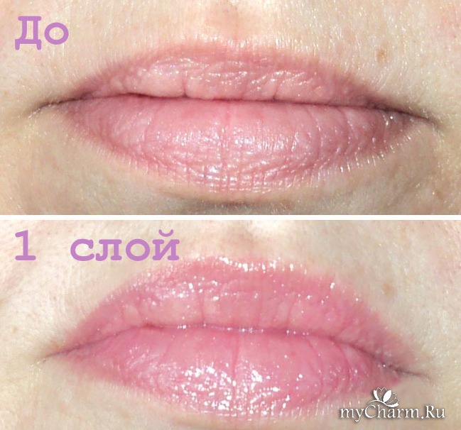 Яркого оттенка Proper Pink практически не видно, но выравнивание кожи губ наблюдается, поверьте. И даже на фото видно, что мелких морщинок и трещинок на губах становится меньше.