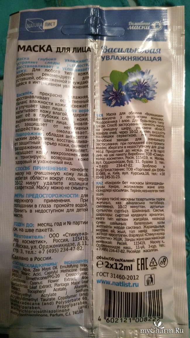 И сейчас мне хочется рассказать вам об увлажняющей маске "Васильковая маска для лица Мгновенный эффект" от Naturalist.
