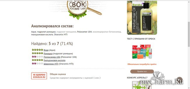 Останавливаться на каждом компоненте последнего не стану, просто скажу, что меня в нём ничего не напугало. Хотя вот сервис проверки состава косметики не слишком-то в восторге от него.