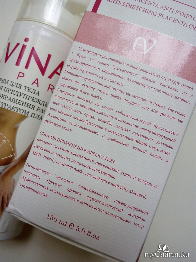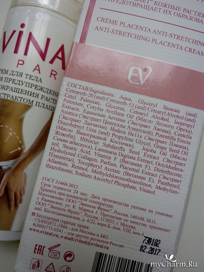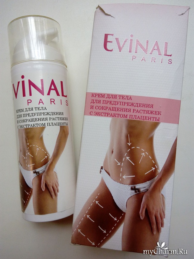 Это я к чему? Говорят, что спорт минимизирует растяжки и делает кожу более гладкой. Мне нельзя, посему я обратилась к альтернативному варианту – крему для тела для предупреждения и сокращения растяжек Evinal. Активным веществом, входящим в состав продукта, является экстракт плаценты. Он, в свою очередь, призван насыщать кожу биологически активными веществами, которые смягчают, увлажняют и подтягивают кожу, а также нормализуют обменные процессы и ускоряют метаболизм.