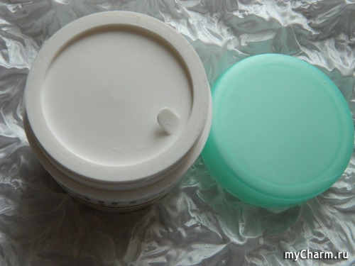 Находится он в круглой баночке с завинчивающейся крышкой. Кроме того, под крышкой находится ещё вот такое препятствие для бактерий – дополнительная пластиковая крышечка, потянув которую за язычок, можно заглянуть внутрь баночки.