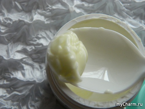 А там… масло. Настоящее, густое, желтоватого оттенка, практически как домашнее сливочное. Вот только аромат другой – нежный кокосовый. Зачерпываешь из баночки порцию масла и наносишь на кожу рук, наслаждаясь запахом кокоса… Чудо как хорошо!
