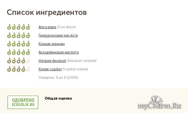 Чтобы удостовериться в натуральности всех компонентов, забила их на сайт проверки состава. Как видите, продукт одобрен.