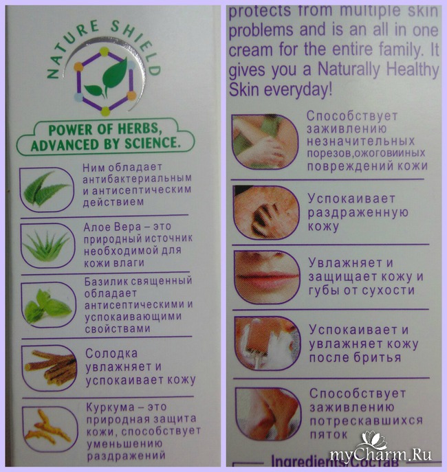 Производитель указывает на то, что средство содержит комплекс трав с успокаивающими и антисептическими свойствами. И рекомендует крем для всей семьи, так как он обладает обширным спектром действий.Состав