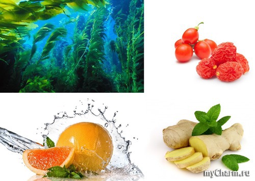 - экстракт морских водорослей – это источник витаминов, минералов микро и макроэлементов для нашей кожи и подкожных процессов. Содержащийся йод позволяет усилить сжигание жиров и получить эффект коррекции фигуры. Улучшается метаболизм и клеточный обмен, выводятся шлаки и лишняя жидкость.