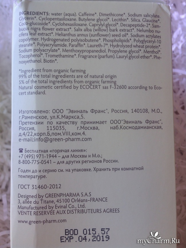 Повертев коробочку в руках, нашла информацию следующего содержания: