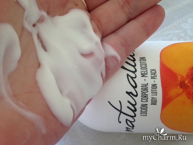 Про нереальный аромат лосьона следует сказать отдельно. Это просто неописуемо! Когда наносишь на кожу, чувствуется насыщенный запах персика, будто рядом кто-то разрезал настоящий! На коже он держится еще какое-то время, но очень ненавязчиво. В линейке Naturalim присутствуют и другие фруктовые лосьоны, наверно, они все так волшебно пахнут! Уже только из-за запаха, следует приобрести себе этот питательный лосьон.