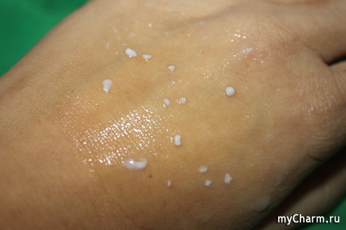А теперь, о самом применении. Выдавливаем небольшую капельку средства, наносим её на лицо и начинаем растирать круговыми движениями. Прямо на глазах происходит очищение, а именно, гель как бы абсорбируя загрязнения, скатывает их в шарики. Их нужно просто смыть теплой или прохладной водой. Процесс завершен. Вы сразу ощущаете прилив свежести и бодрости, кожа нежная, мягкая и чистая. Проводим рукой и замечаем её приятную гладкость.