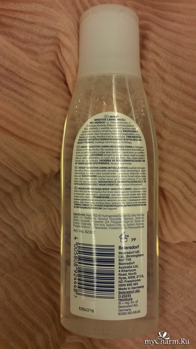 Вода в своем составе не содержит парабенов и силиконов. Наличие в средстве витамина Е, который отвечает за молодость кожи, - еще один плюсик в ее пользу. Мицеллярная вода от Нивеа ухаживает за кожей уже на этапе очищения, а это, согласитесь, немаловажный аргумент, чтобы ею пользоваться.