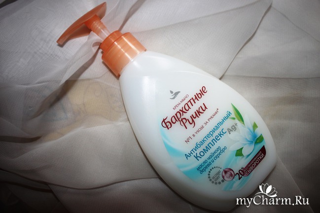 Сейчас таким опытным образцом является жидкое мыло Бархатные ручки Антибактериальный комплекс. Я долгое время проходила мимо него, потому как многие варианты с названием «Антибактериальный» очень скромны в плане аромата. Это либо специфический запах, либо химический. Но, в какой-то момент решилась и, слегка отвернув крышку, вдохнула. И мне понравилось. Привлекательной оказалась и акция «два по цене одного». И тут уже невозможно отказаться от покупки.