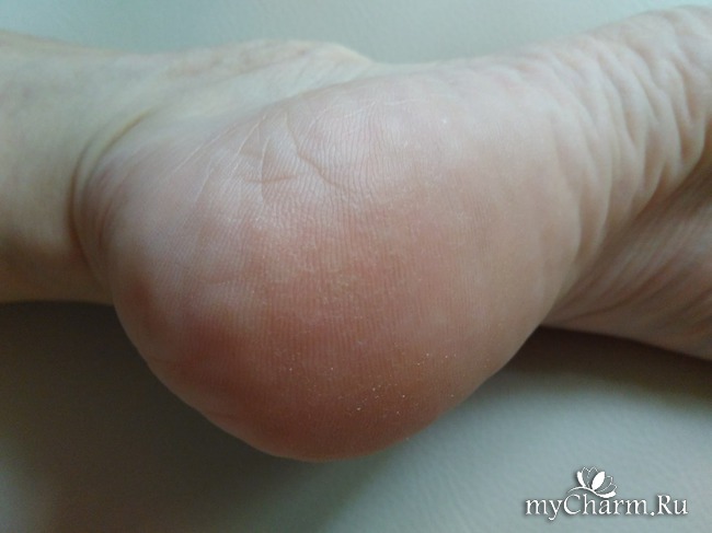 Здесь пятки на следующий день. Шероховатости пяток прибавилось, но отшелушиваться кожа не начала ни на следующий день, ни через неделю.