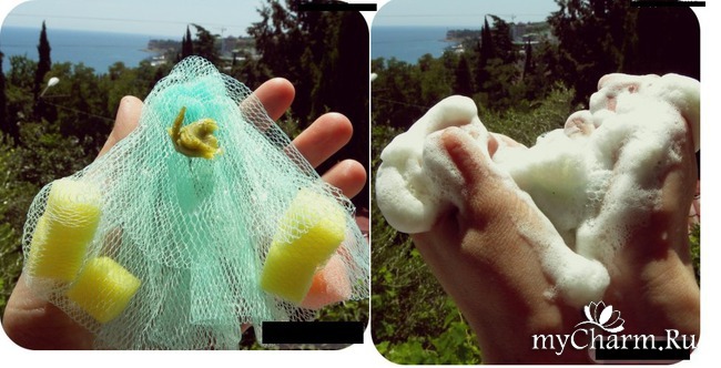 Читала, что девушки применяют специальную "мочалку" - мордосетку, с ней пенка получается больше. У меня такой нет, поэтому возьму фото из интернета, чтобы вы увидели сами.