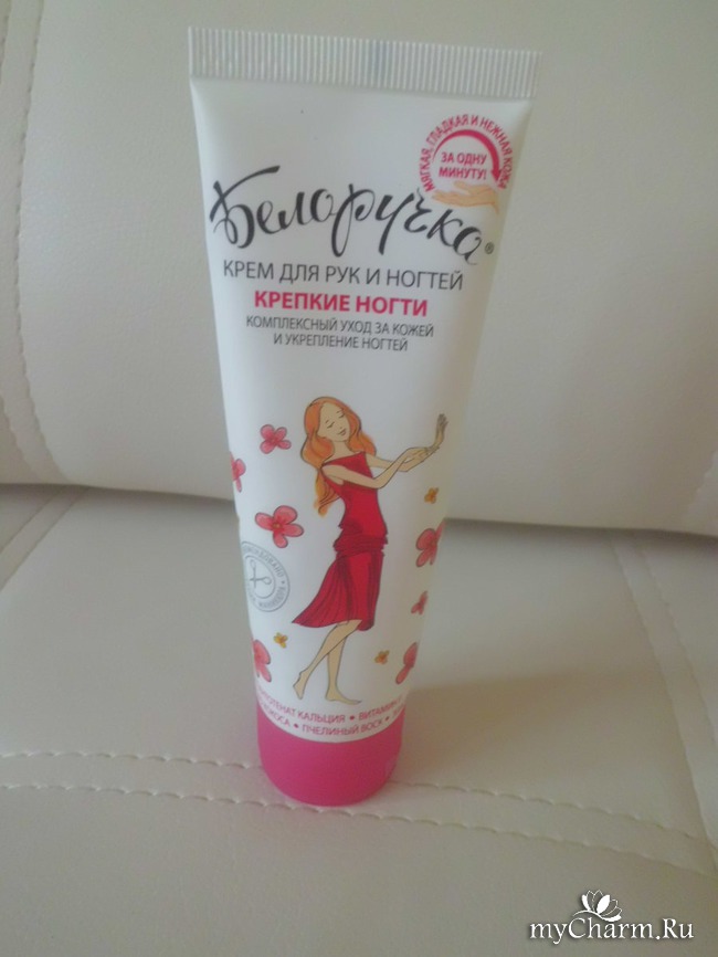У меня очень сухая кожа рук и на осень-зиму-весну, когда мои руки сильно шелушатся от ветра и холода, я пользуюсь в основном аптечными средствами или же просто покупаю более жирные кремы. Но, естественно, кожа рук постоянно подвергается воздействиям окружающей среды и летом тоже нуждается в уходе. Мне на помощь приходят кремы марки Белоручка. Раньше я покупала крем «Питательный» этой серии и он меня устраивал. А на этот раз я его не увидела в магазине и мое внимание привлек крем «Крепкие ногти». Кстати, «Питательный» тоже очень хорошо питал ногти и кутикулу.
