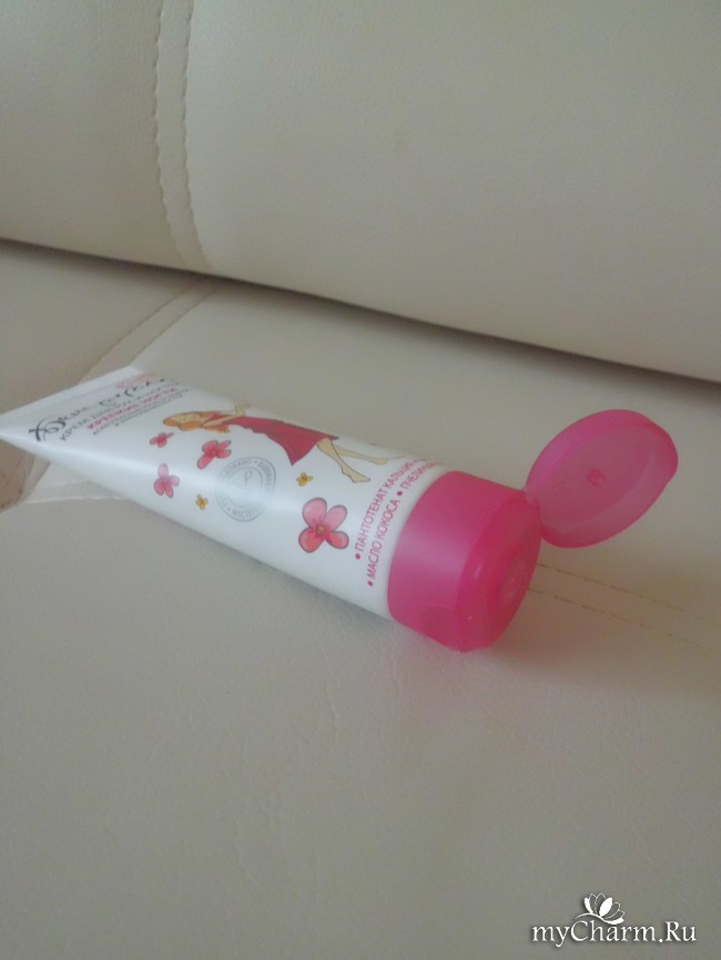 Первое, что меня привлекает в кремах этой марки — это оформление тюбика, яркие гармоничные цвета. На них нарисованы девушки в красивых платьицах. На этот раз тюбик бело-красный, с девушкой в красном платье. Сама туба мягкая, приятная на ощупь. А уж о цена за крем очень даже привлекательная: около 40-50 рублей за 80 мл. Я, как любитель всяких тюбиков и кремов, конечно же не сдержалась от покупки.