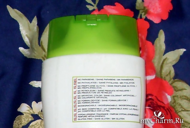 Формула продукта разработана с учетом современных требований к качественной косметической продукции – она не содержит парабены и искусственные красители, в ней присутствует гипоаллергенная отдушка. Само средство имеет нейтральный уровень рН для кожи, что очень важно, если вы планируете пользоваться средством на ежедневной основе.