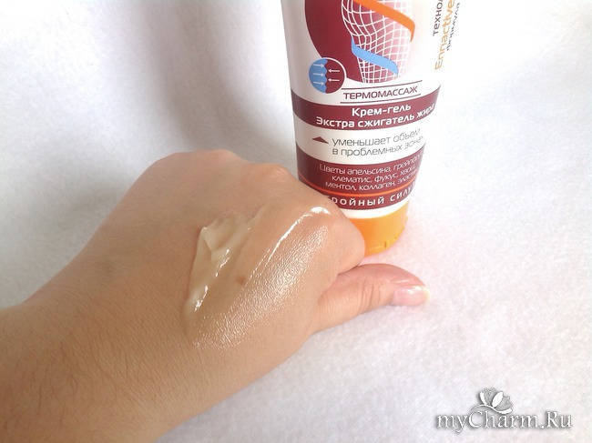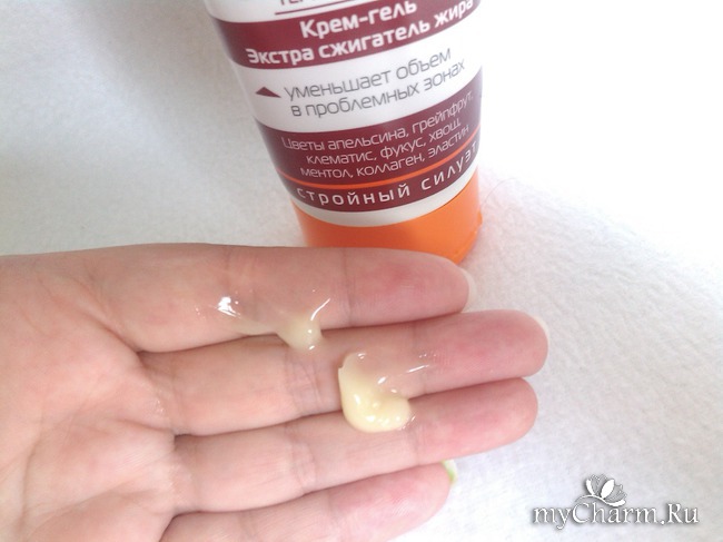 Это крем-гель, который помогает бороться с излишками подкожного жира в проблемных зонах и способствует коррекции фигуры. При нанесении средства на кожу сначала ощущается холодок, затем тепло. Такое контрастное чередование тепла и холодка означает, что крем начал свою работу.