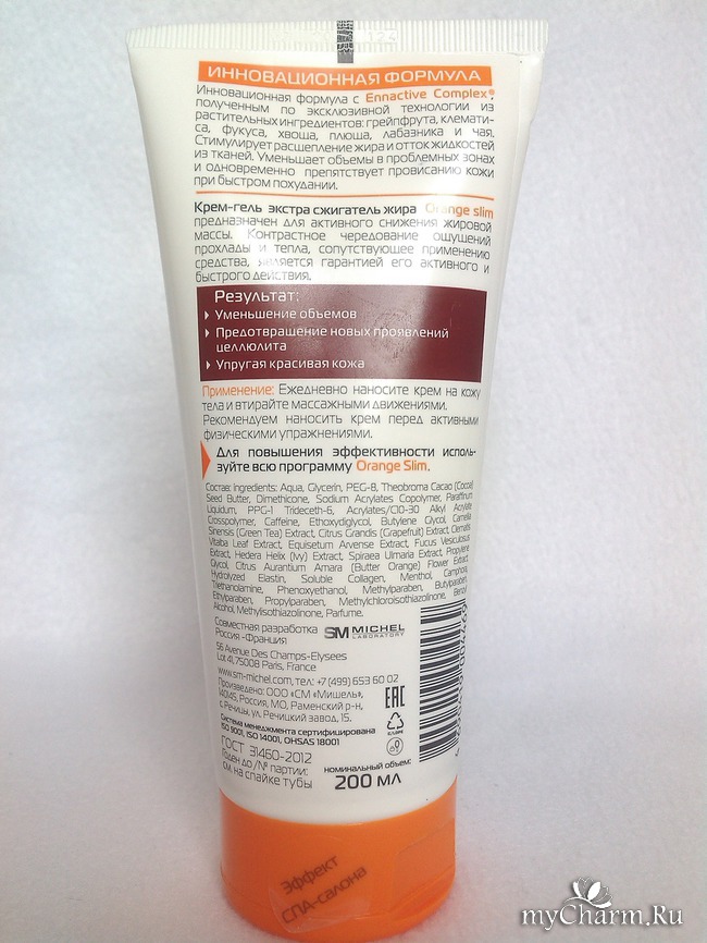 Сегодня хочу познакомить вас со средством от компании "СМ Мишель" Orange Slim Крем-гель Экстра сжигатель жира. Это совместная разработка России и Франции.