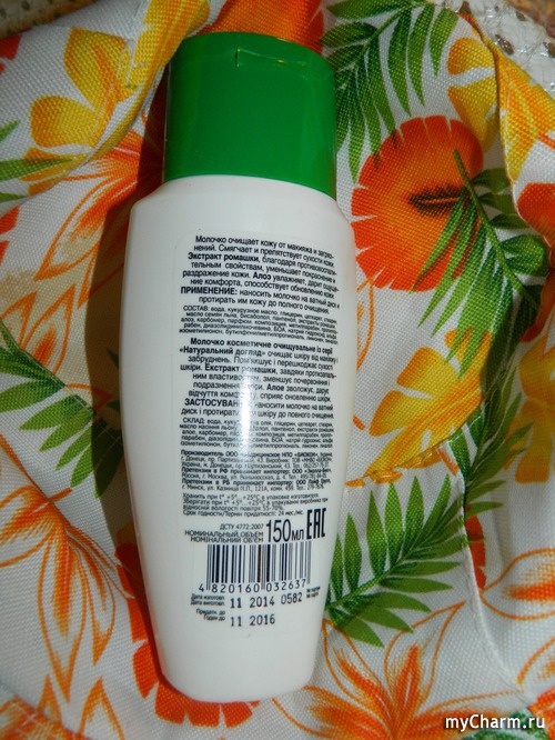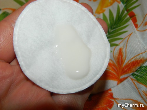 Использовать молочко очень просто: наносишь на диск и протираешь им лицо, убирая загрязнения и макияж.