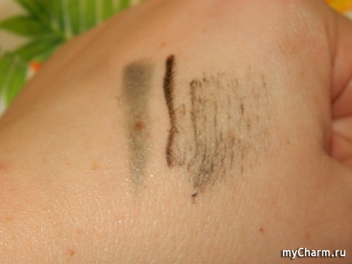 Для наглядности приведу пример. На кожу руки я нанесла тени для век от Орифлейм, карандаш от Ив Роше и тушь от Формула преображения.