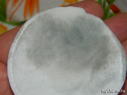 Достаточно одного ватного диска, смоченного в молочке, чтобы от косметики не осталось и следа. Вот так выглядит кожа после процедуры очищения. Никакого ощущения плёнки и жирности кожи не возникает.
